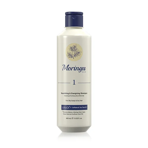 شامپو مغذی و انرژیبخش مورینگا اِمو 1 حاوی روغنهای گیاهی و کافئین است که ضمن کنترل چربی اضافه و پاکسازی منافذ پوست سر، فولیکولهای مو را نیز تقویت میکند. همچنین به علت وجود ترکیبات آبرسان در این محصول، رطوبت مورد نیاز تارهای مو تامین شده و از ایجاد موخوره و شکنندگی آنها جلوگیری میشود.