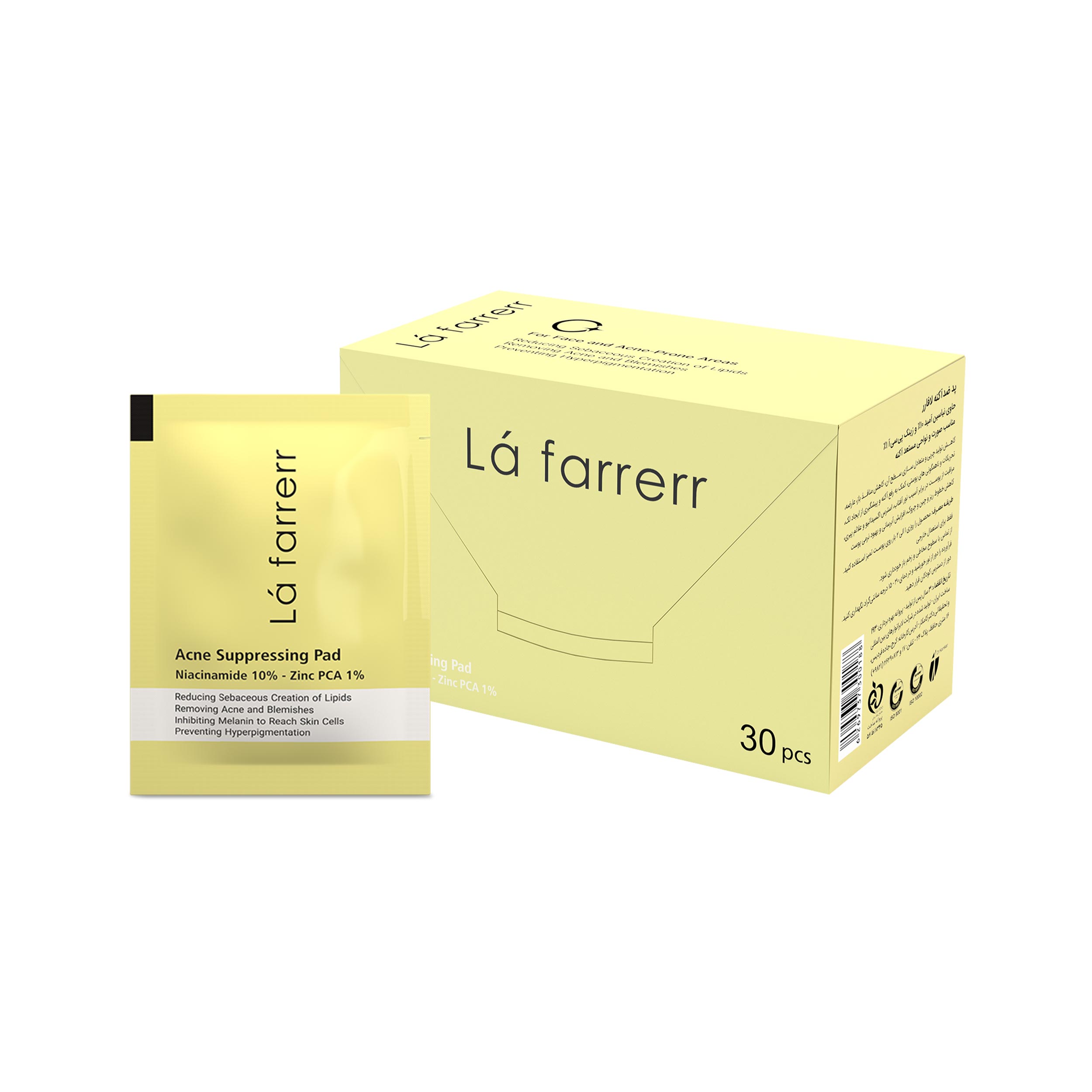 پد ضد آکنه لافارر مناسب صورت و نواحی مستعد آکنه و حاوی نیاسین آمید 10% و زینک پی سی آ 1%